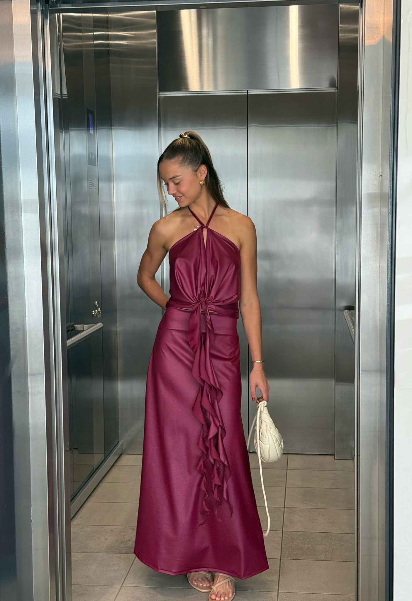 The new Mulan Skirt paired with our Mulan top this design is a flowing maxi silhouette made from a luxurious shimmer fabric that adds a touch of elegance to any look. This shimmer fabric offers a more refined finish while maintaining the flattering, easy-to-wear shape you love.